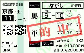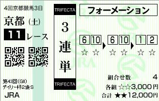 今日の デイリー杯2歳S の 後だしポン馬券です。
